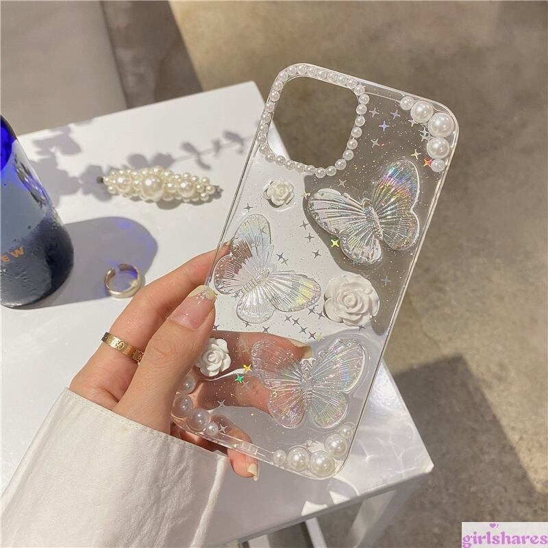 オリジナル iPhone12プロケース パール 花柄 蝶々 キラキラ iPhone 12 11Pro 11 XS XR SE2 8 7Plusケース クリア 韓国ファッション 女子力UP 並行輸入品 日本未発売item