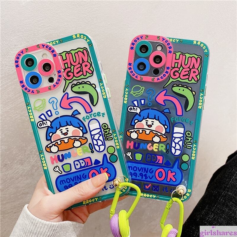 キャラクター iPhone12Proケース ストラップ付き iPhone11Proケース クリア iPhone 12 11 XS XR SE2 8 7Plusカバー 落書き 個性的 かわいい 韓国女子愛用 人気スマホケース 並行輸入品 プチプラ♪
