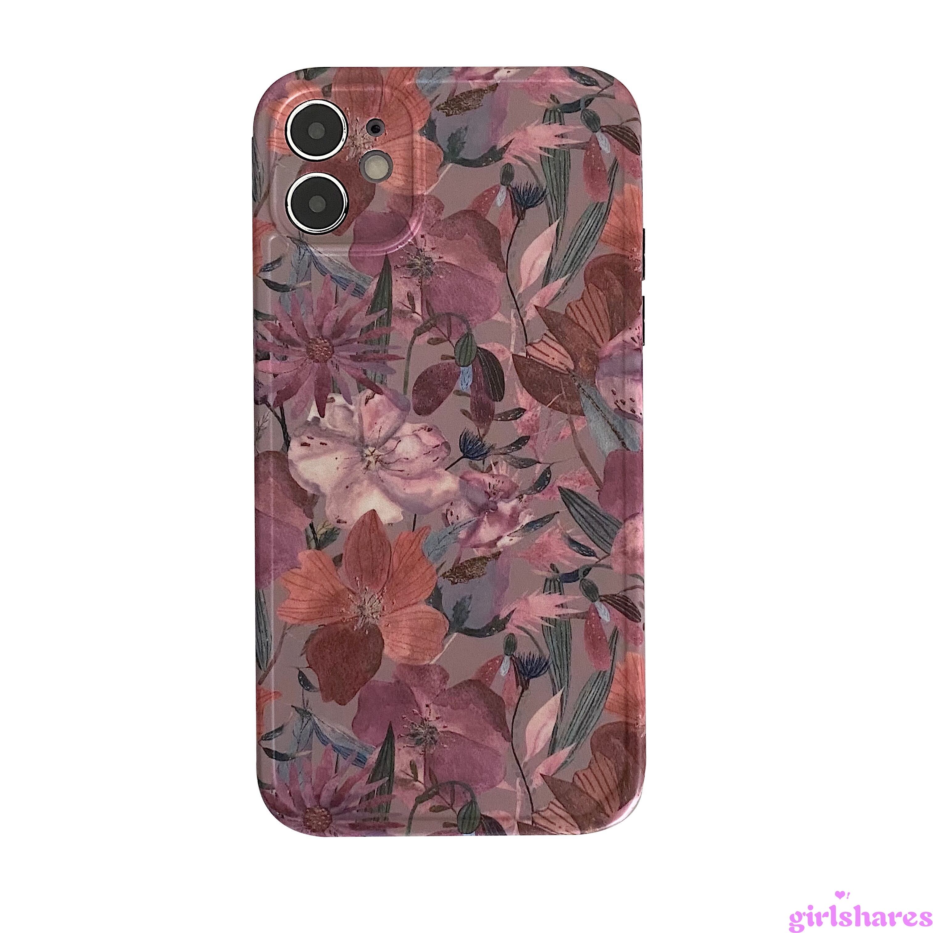 iPhoneケース・スマホケース フラワー エレガント iPhone 12ProMax~iPhone7ケース パープル系 かわいい 秋の新作 韓国ファッション プチプラ 並行輸入品