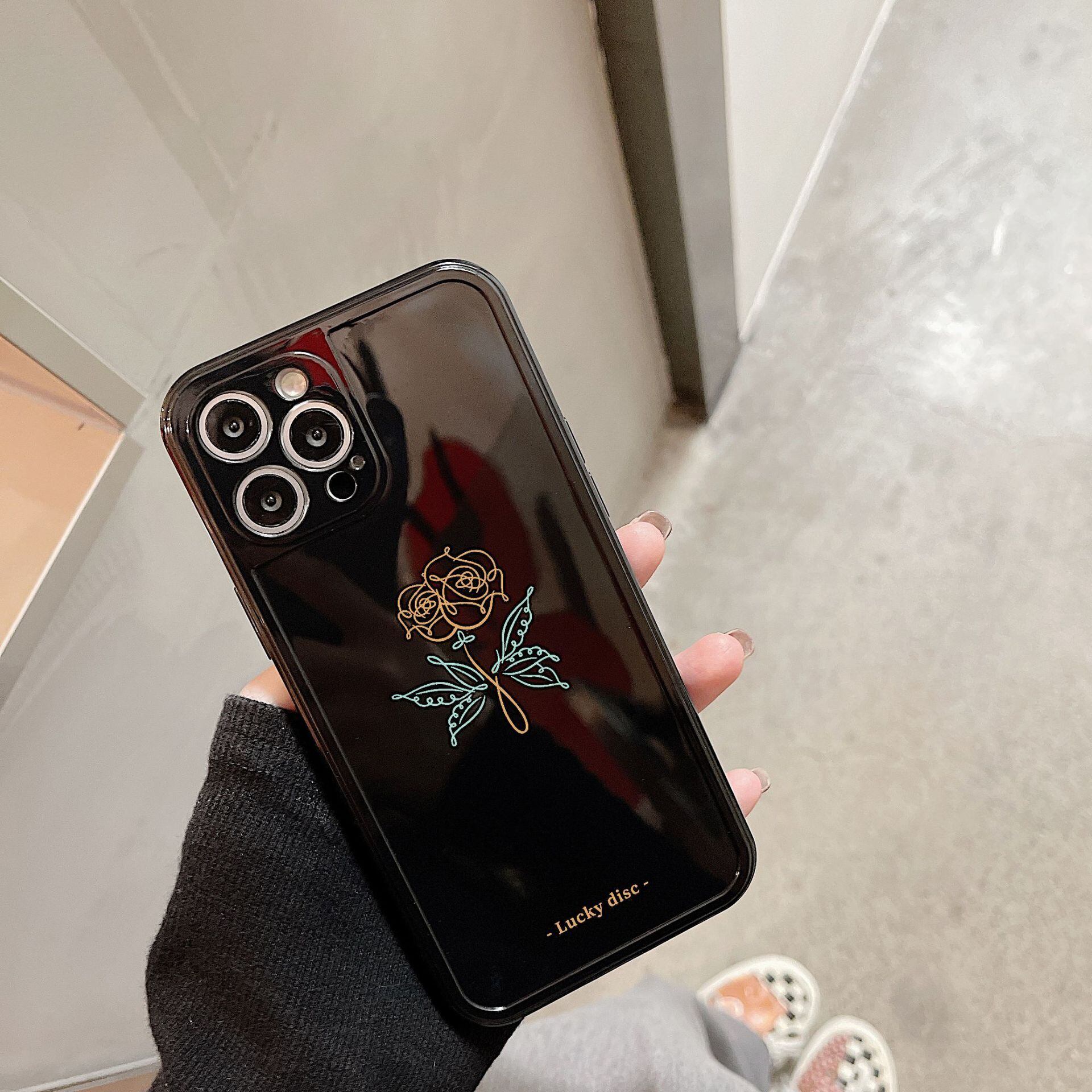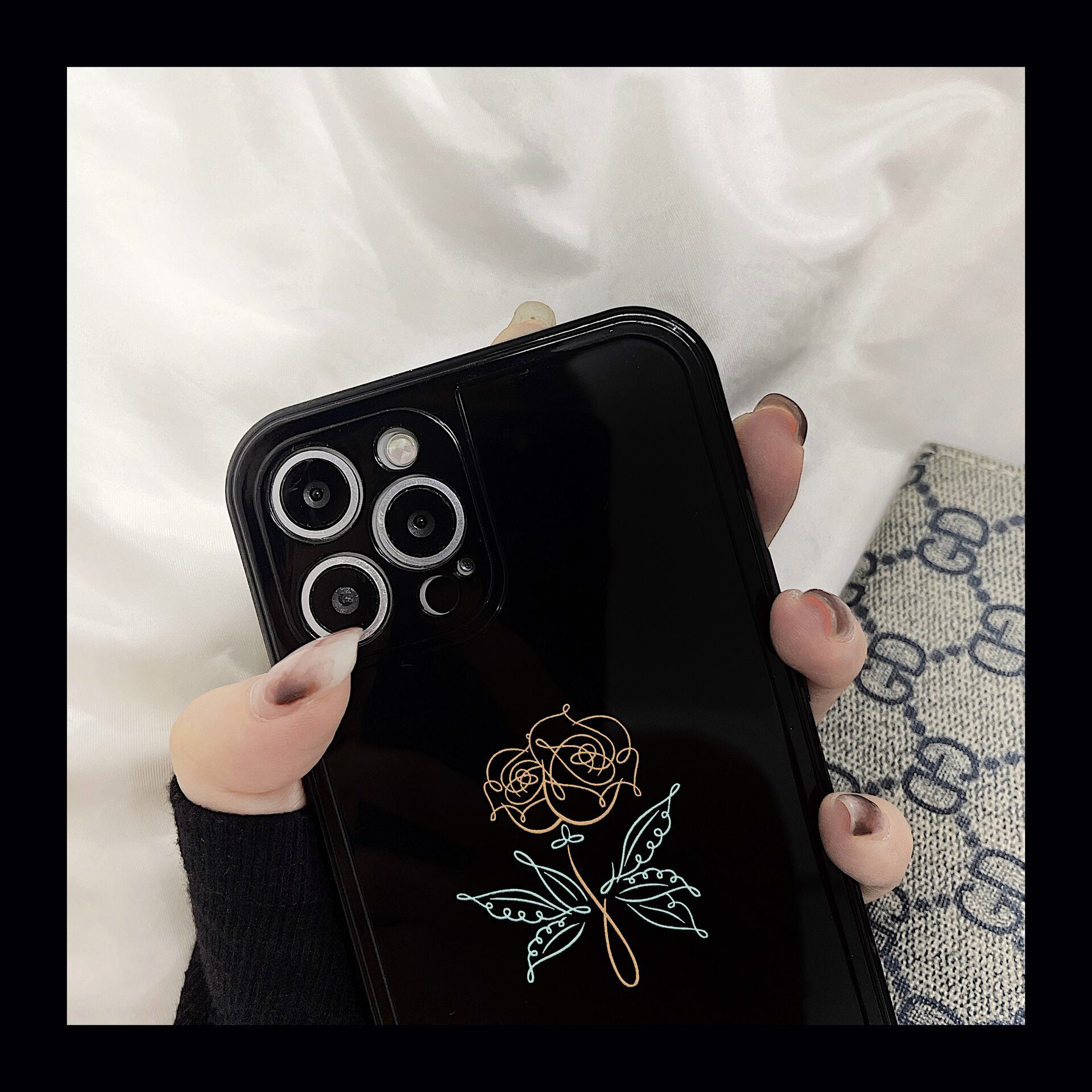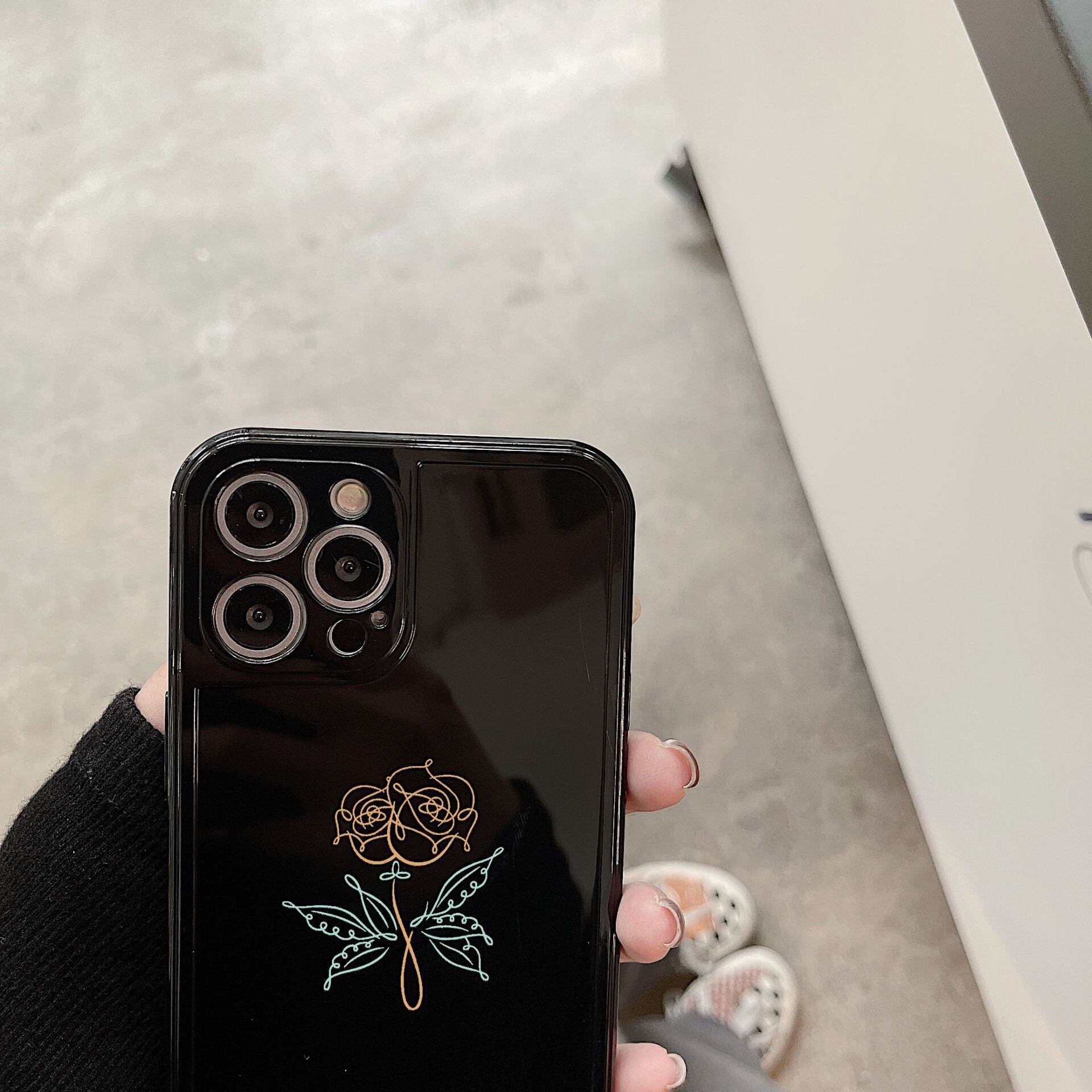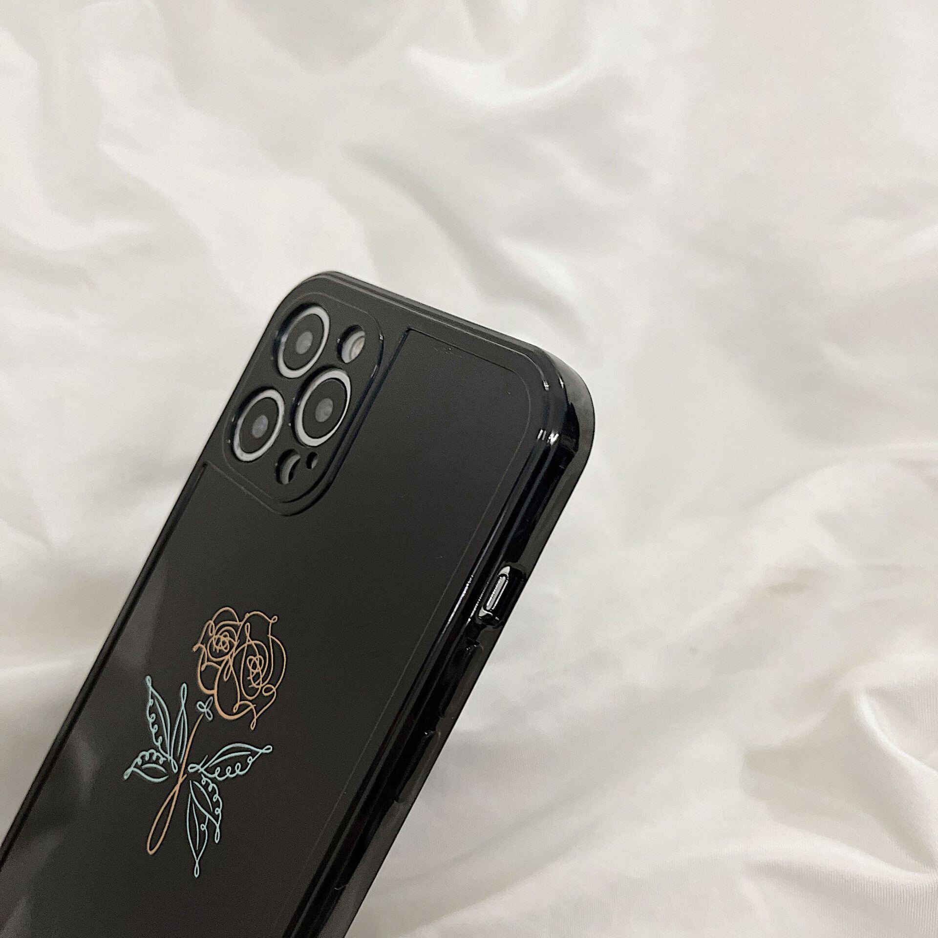韓国ファッション iPhone12Proケース ローズ iPhone12ケース 花柄 iPhone11ProMaxケース 芸術感 iPhone11Pro 11 XS XR SE2 8 7plusカバー ブラック スマホケース 税込 ♪