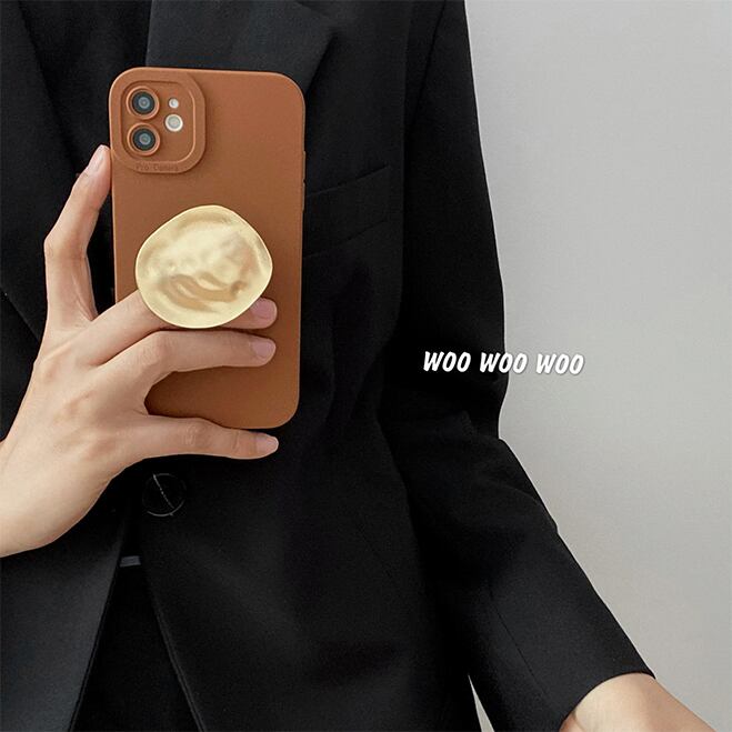 iPhone 13ProMaxケース 高級感 ポップソケッツ付 アイフォン13/12/11/XSカバー オシャレ アイフォンケース シンプル 無地 ブラウン 可愛い