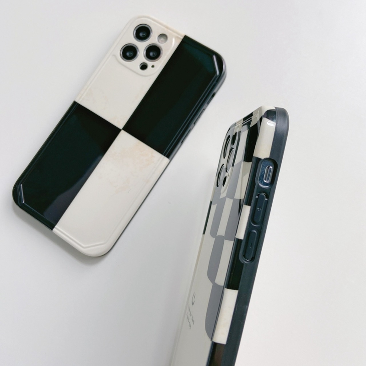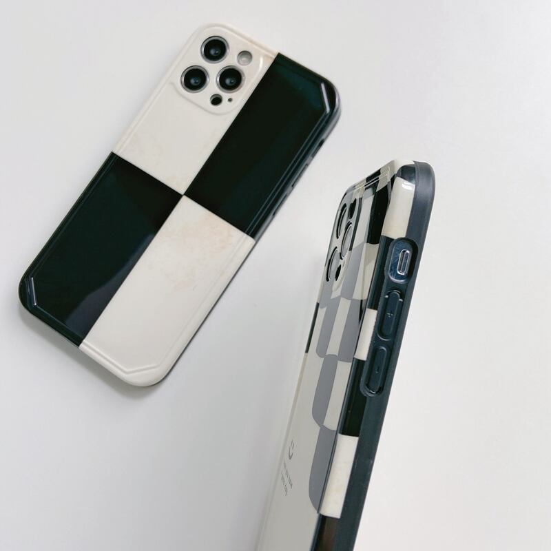 白x黒 iPhone13ProMax/13Pro/13ケース チェック柄 個性的 アイフォン12Proカバー かわいい 韓国ファッション iPhone12 11Pro XS XR 7Plusケース 2色 お洒落♪