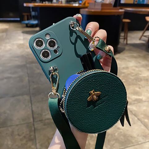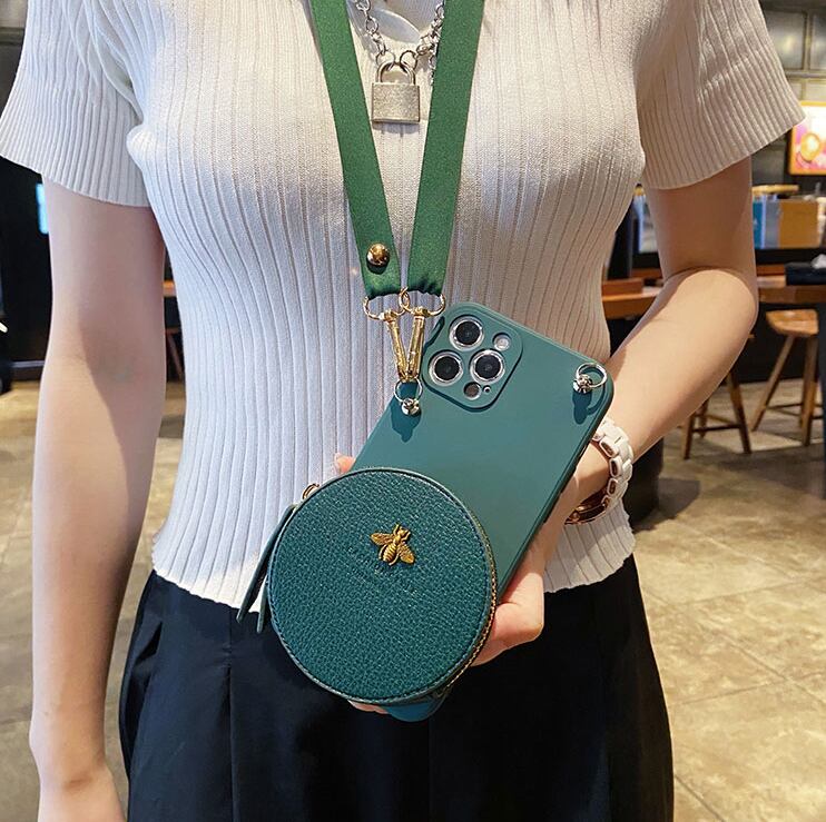 多機能 iPhoneケース 首掛け 斜め掛け 2way コインケース付き iPhone 13ProMax 13Pro 13 12ProMax 12Pro 12 12Mini 11ProMax 11Pro 11 XSmax XS XR X SE2 8 8plus 7 7Plus 6s 6sPlusケース 緑 シック オシャレ 人気スマホケース おすすめ♡