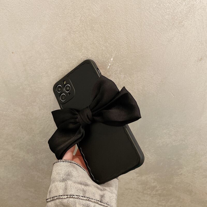 ブラック系 iPhone13 13Pro 13ProMaxカバー リボン付き iPhone12 12Pro 12ProMax 12Miniケース かわいい iPhone11 11Pro 11ProMax XSMAX XS XR X SE2 8Plus 8 7Plusケース 韓国女子愛用 人気スマホケース♪