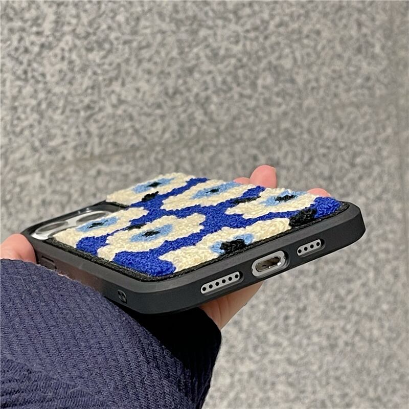 iPhone13 ProMaxケース 花柄 iPhone12ProMax/12Pro/12ケース フラワー iPhone11ProMax 11 XS XR 8Plusケース かわいい ファブリック 韓国女子愛用 個性的 ブルー お洒落♪