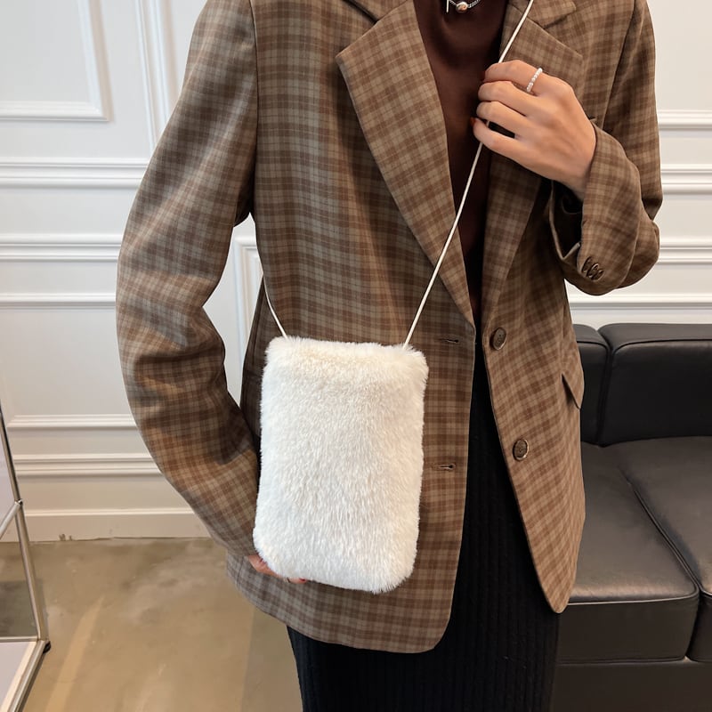 ふわふわ スマホバッグ 斜めがけ ミニバッグ シンプル サコッシュ ショルダーポーチ スマホポーチ お財布ポシェット ミニショルダーバッグ もこもこ ミニカバン フェイクファー 冬 かわいい エレガント 全5色 送料無料