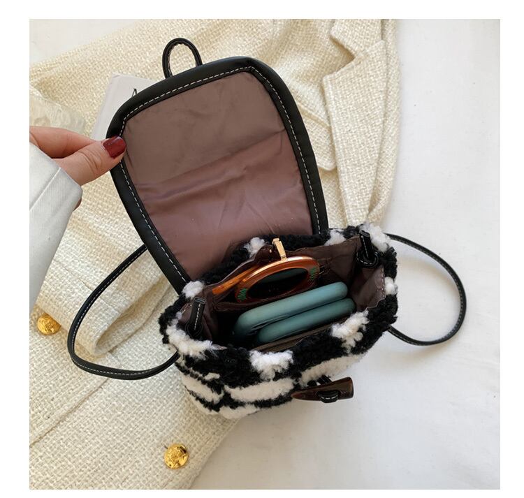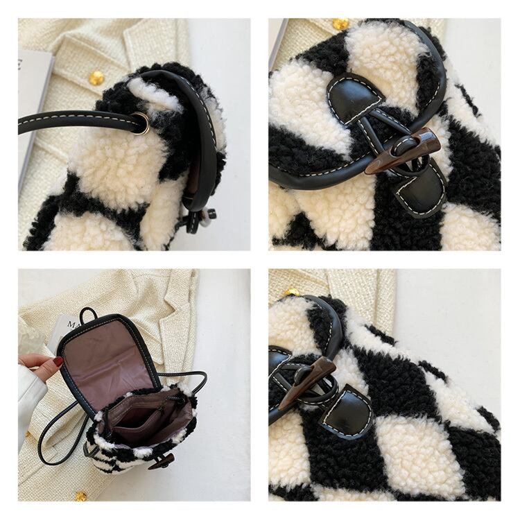 菱形 お財布ポシェット ふわふわ ミニバッグ エレガント ショルダーバッグ 斜めがけ ミニポーチ かわいい 冬 スマホポーチ ひし形 バッグ レディース ミニカバン ブラック カーキー 全2色