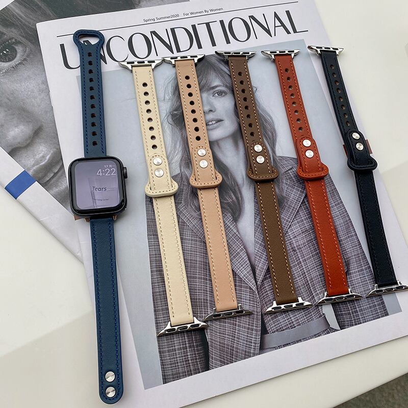 AppleWatch 時計バンド 細身 替えベルト かわいい アップルウォッチ ベルト バンド レザー お洒落 全6色 カラーバリエーション カジュアル 税込 シリーズ7対応!