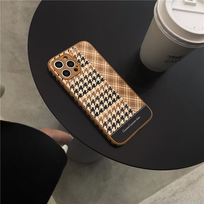 iPhone13ProMaxケース 千鳥格子 スプライス iPhone12Proケース 菱形 アイフォン11ProMax XR 8Plusカバー レディース ブラウン系 韓国ファッション 税込