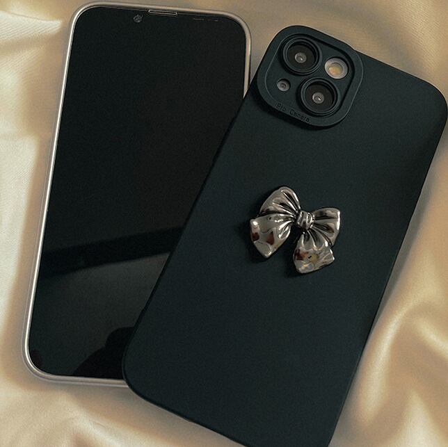 アイフォン 13/13Pro/13ProMaxケース リボン付き 個性的 iPhone12Pro 11ProMax XR 8Plusカバー 立体的 スマホケース 大人可愛い スタイリッシュ 黒 銀 全2色 お洒落 女子