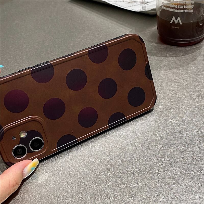 ブラウン系 アイフォン12ProMaxケース ポルカドット柄 iPhone12Pro 11ProMax XS XR 8Plus 7ケース エレガント 可愛い カジュアル お洒落 スタイリッシュ 女子力UP♪