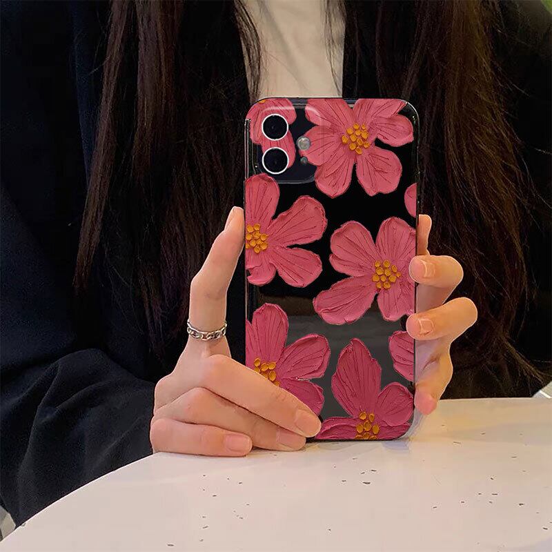 iPhone13ProMax~7ケース 可愛い アイフォンカバー 赤いフラワー 花柄 エレガント カメラ保護 カジュアル 並行輸入品 レディース 税込