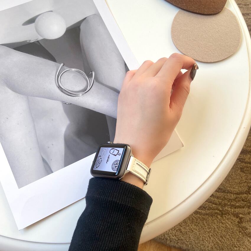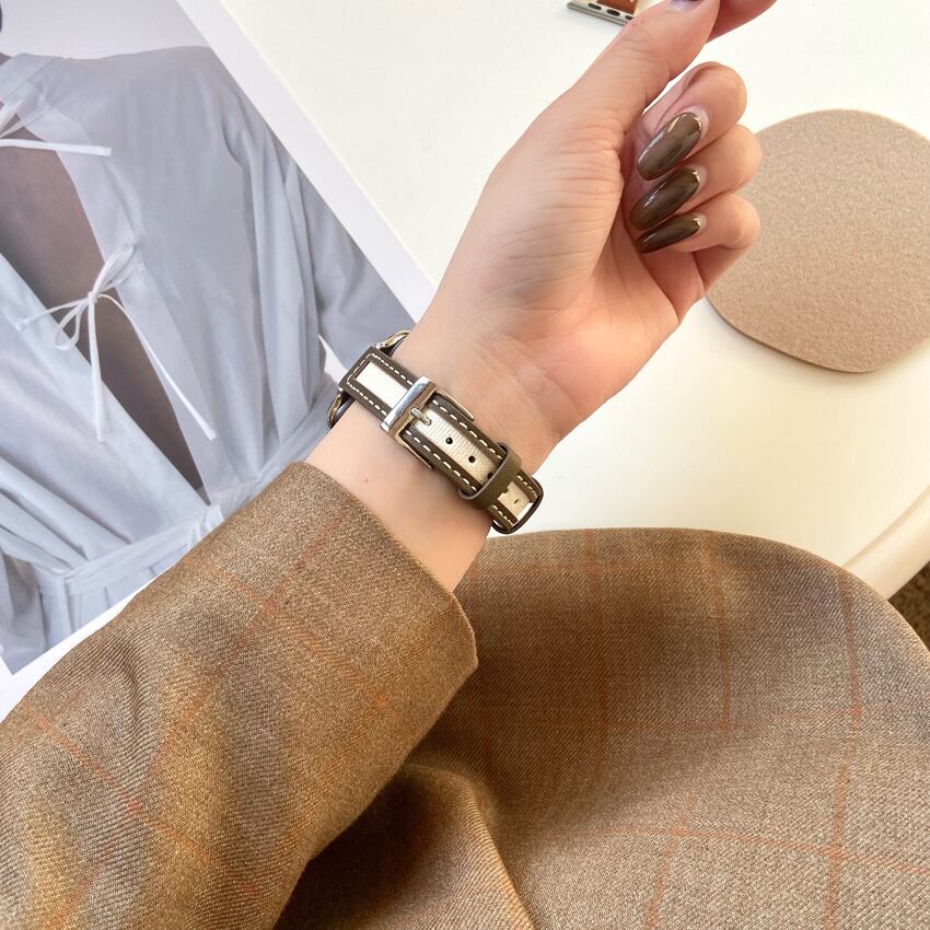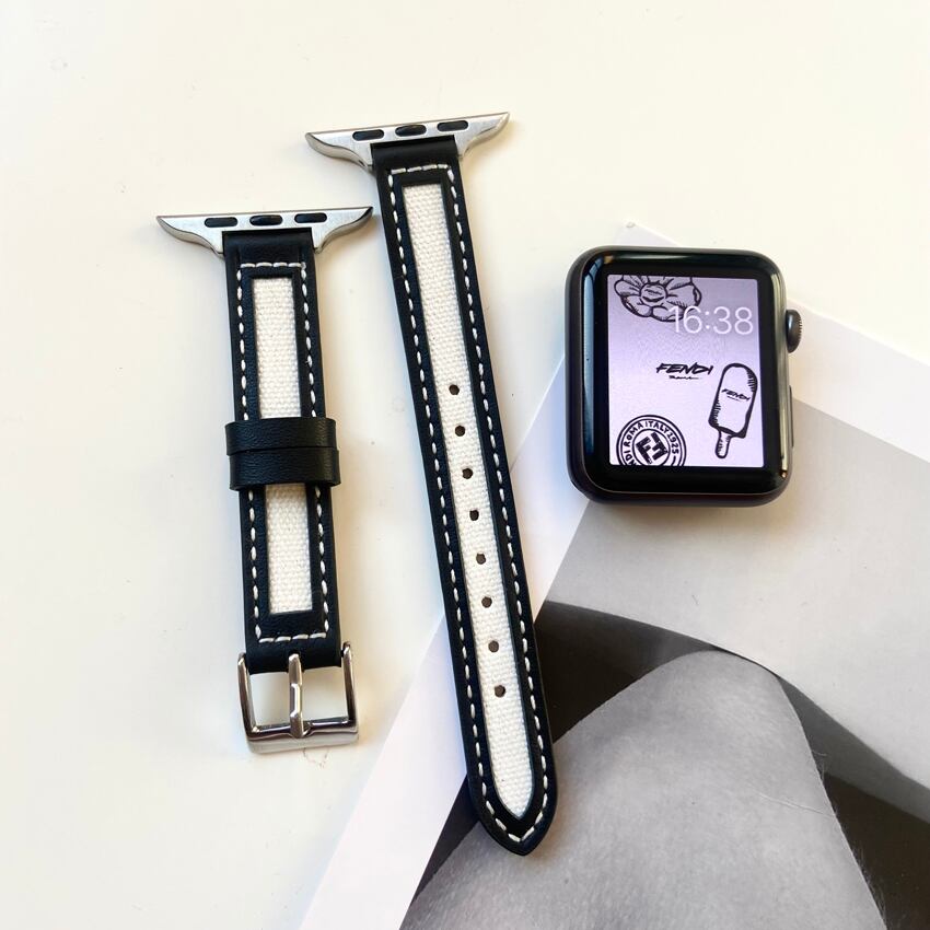 レザーの縁取り×キャンバスの組み合わせがカジュアル且つ上品なAppleWatch替えバンド◎