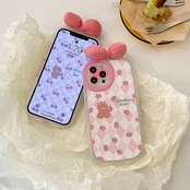 アイフォン13Proケース リボン付き iPhone13ProMaxケース かわいい iPhone12 ProMax/11/XS Max/7 Plusケース ピンク 大人可愛い テディベア 並行輸入品