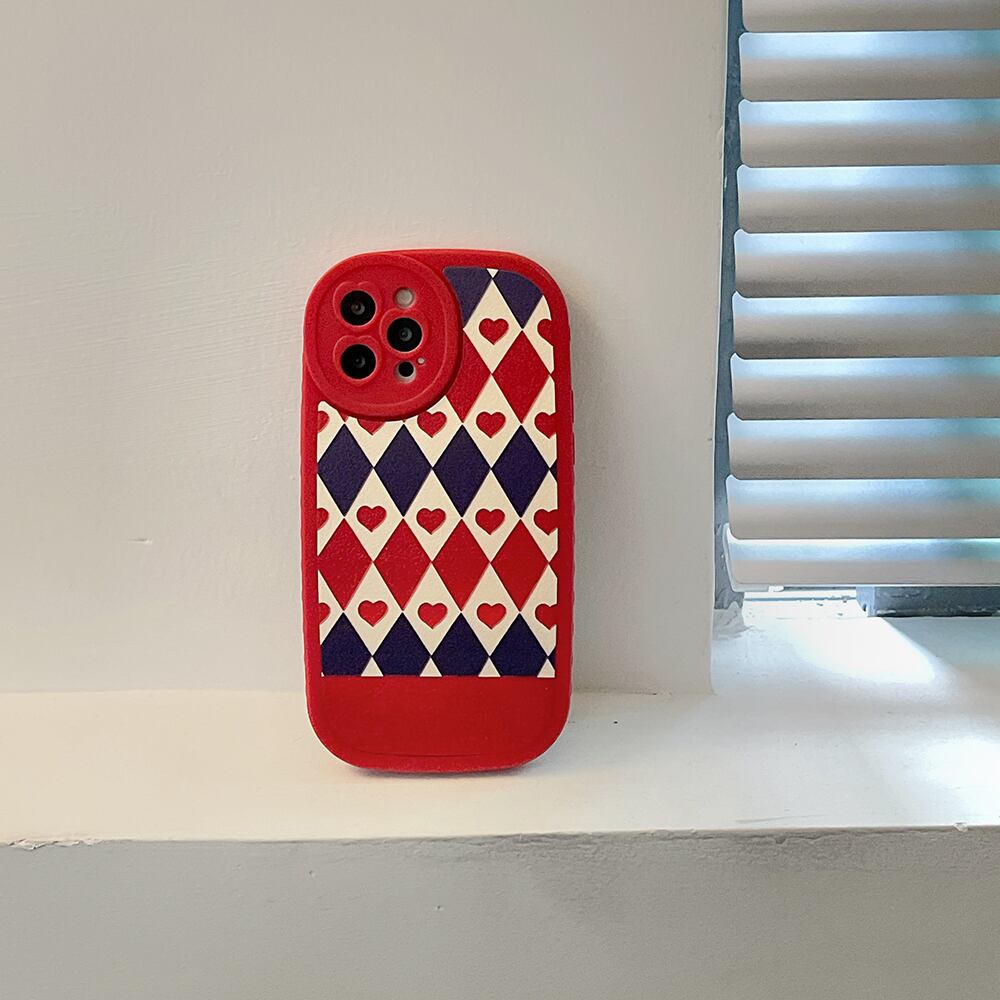 菱形 iPhone13ProMax 12Pro 11ケース ハート かわいい iPhoneXS XR 8Plusケース カジュアル 韓国ファッション カメラ保護 レッド系 税込♪