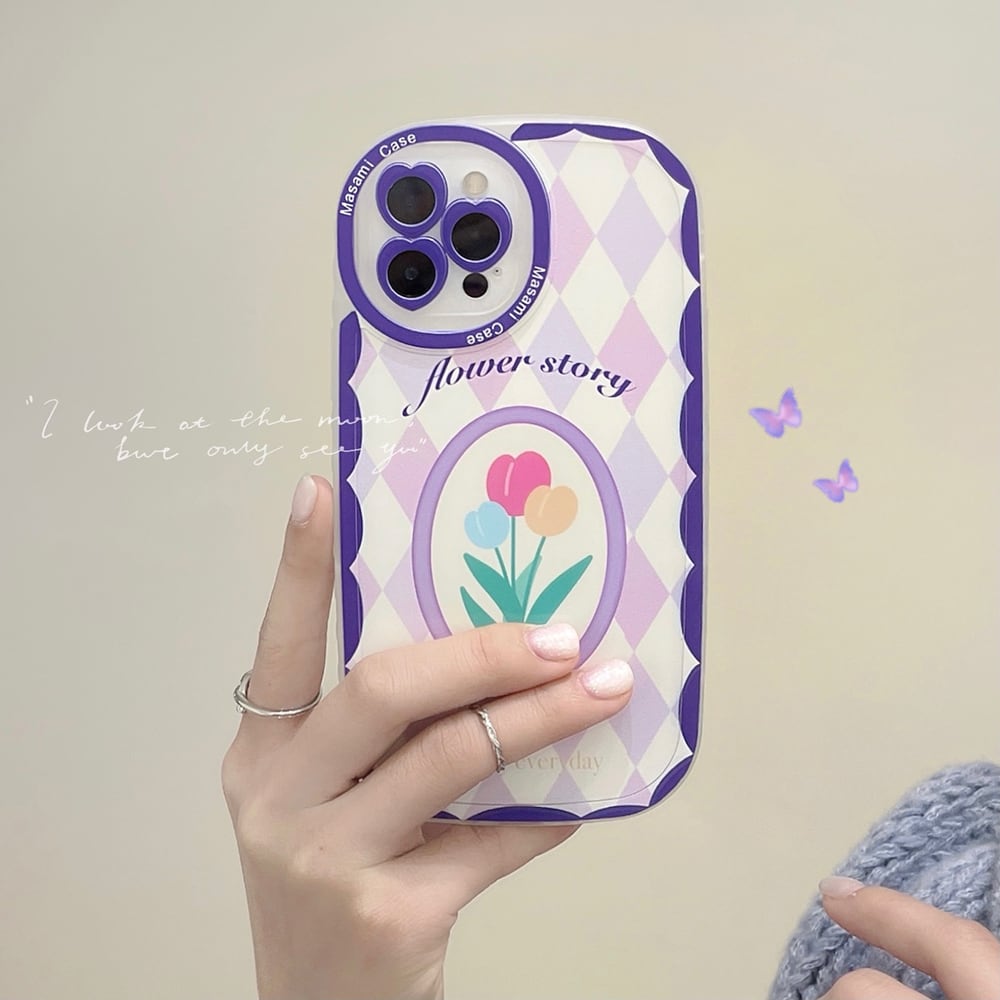 ポップソケッツ付き iPhone13ProMax・12Pro・11・XS・8Plusケース 花柄 エレガント 大人可愛い パープル系 カジュアル 女子 スタイリッシュ 税込
