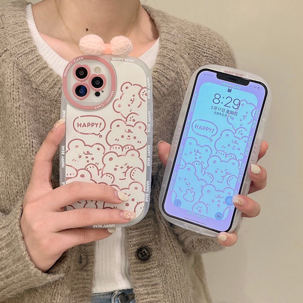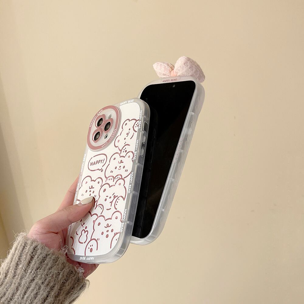 スマホケース アイフォンケース ベア iPhone13ProMaxケース Bear 手描き風 iPhone13 12Pro 11ProMax XS 8Plusカバー リボン付き 韓国芸能人愛用 オシャレ