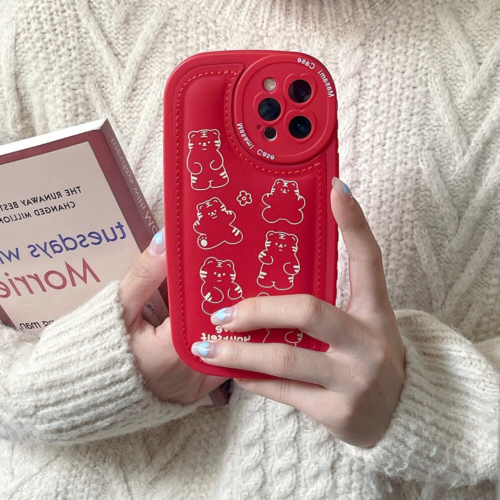 虎 iPhone13ProMaxケース Tiger かわいい iPhone12Pro 11 XS 8Plusカバー レッド系 カメラ保護 キュート 韓国ファッション 新作 お洒落 レディース♪