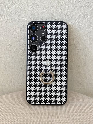 千鳥格子柄 Galaxy S22 Plus/S22 Ultra/S21 Plus/S21 Ultraケース リング付き 大人可愛い スマホケース お洒落 ファッション 女子力UP トレンド 税込