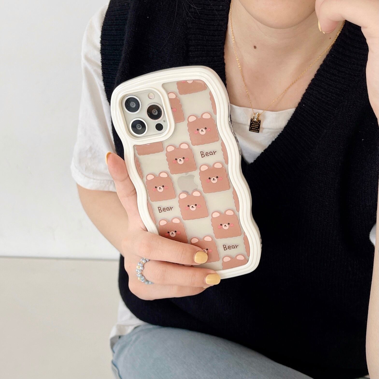 チェック柄 iPhone 13ProMax/13Pro/13カバー ウサギ ベア 萌え萌え アイフォン 12 Pro/11 ProMax/XSMAXケース 可愛い オシャレ 親友とお揃い 全2色♪