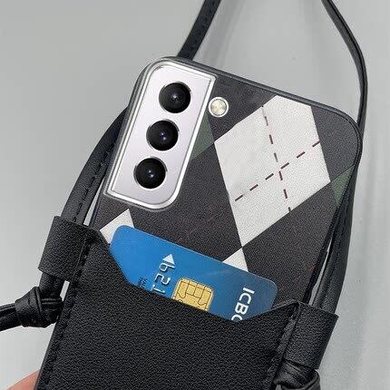 Galaxy S22 Plusケース カードポケット付き Galaxy S22 Ultraケース チェーンストラップ付き Galaxy S22ケース ショルダースマホケース 菱形 レディース 大人可愛い オシャレ