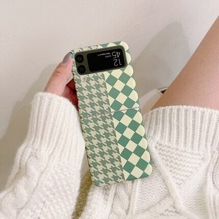 Galaxy Z Flip3 5Gケース チェック柄 ギャラクシーフリップ3カバー 千鳥格子 和む 緑色 折り畳みスマホケース ファッション 上品 オシャレ