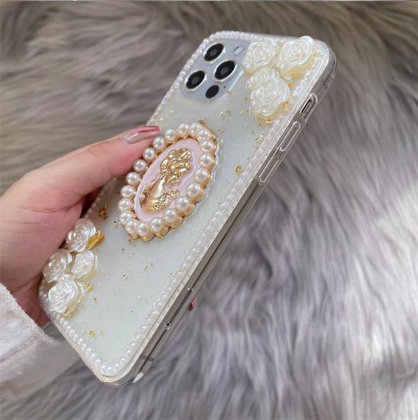iPhone 13ProMax 12Pro 11 XSMAX 8Plusケース レトロ 風 パール 欧米スタイル アイフォンカバー クリア お洒落 かわいい 女子力UP♡