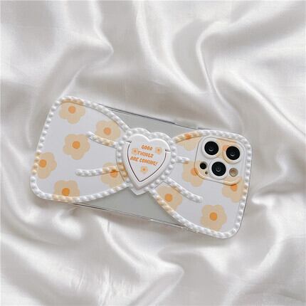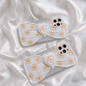 個性的 iPhone13 Pro Max~7Plusケース リボンモチーフ かわいい 花柄 オシャレ スタンド機能 レディース ハート カジュアル 女子力UP