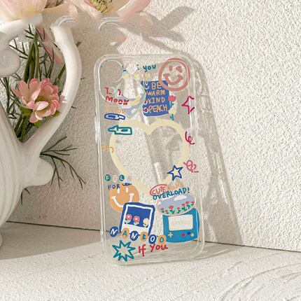 スマホケース 落書き iPhone13Proケース 可愛い アイフォン13 Miniケース 個性的 iPhone12カバー 女子 iPhone 11ProMaxケース キュート 並行輸入品 クリア