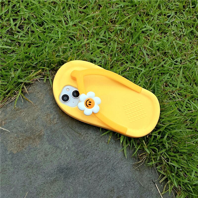 アイフォン13Miniケース スリッパ 花付き iPhone 13Proケース 個性的 iPhone12Mini 11Pro SE3 XS 8Plusカバー 大人可愛い パロディ風 オシャレ イエロー 女子