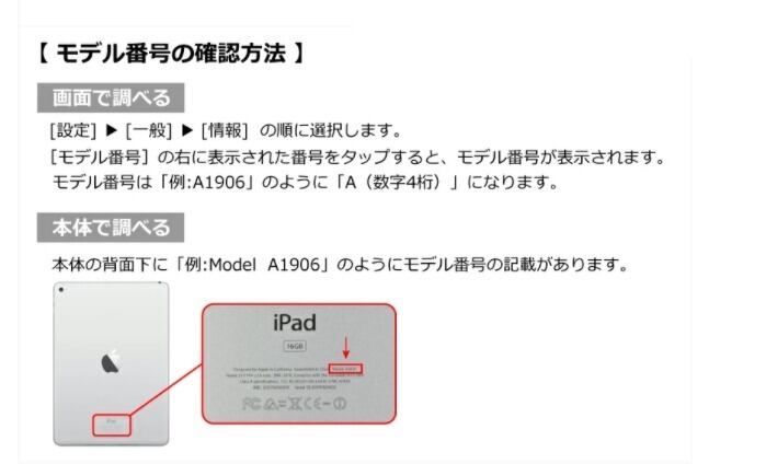 本体の背面下に「例:Model A1906」のようにモデル番号の記載があります。