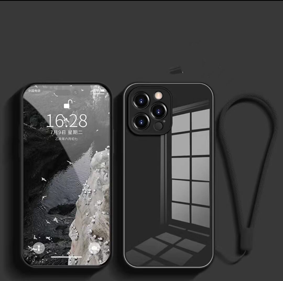 ストラップ付き iPhone14 ProMaxケース 強化ガラス iPhone14 Proケース 無地 iPhone14 Plusケース シンプル 光沢 アイフォン 14 カバー レディース メンズ 全8色