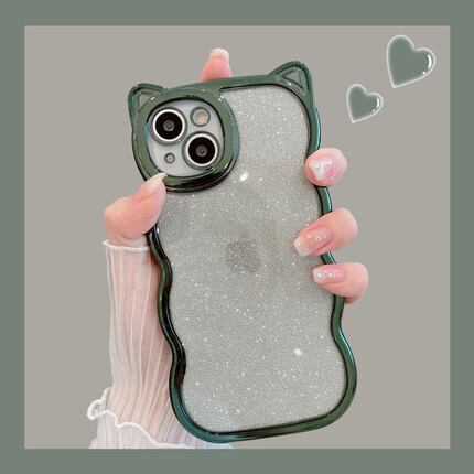 iPhone14ProMax 13 12Pro 11ProMax XS 8Plusケース 猫耳 キラキラ 大人可愛い レディース 上品 クリア 並行輸入品 プレゼント 全4色♪