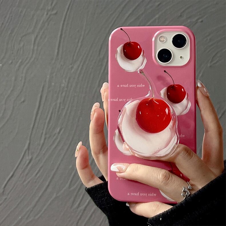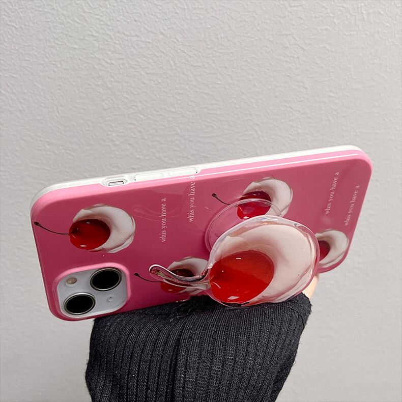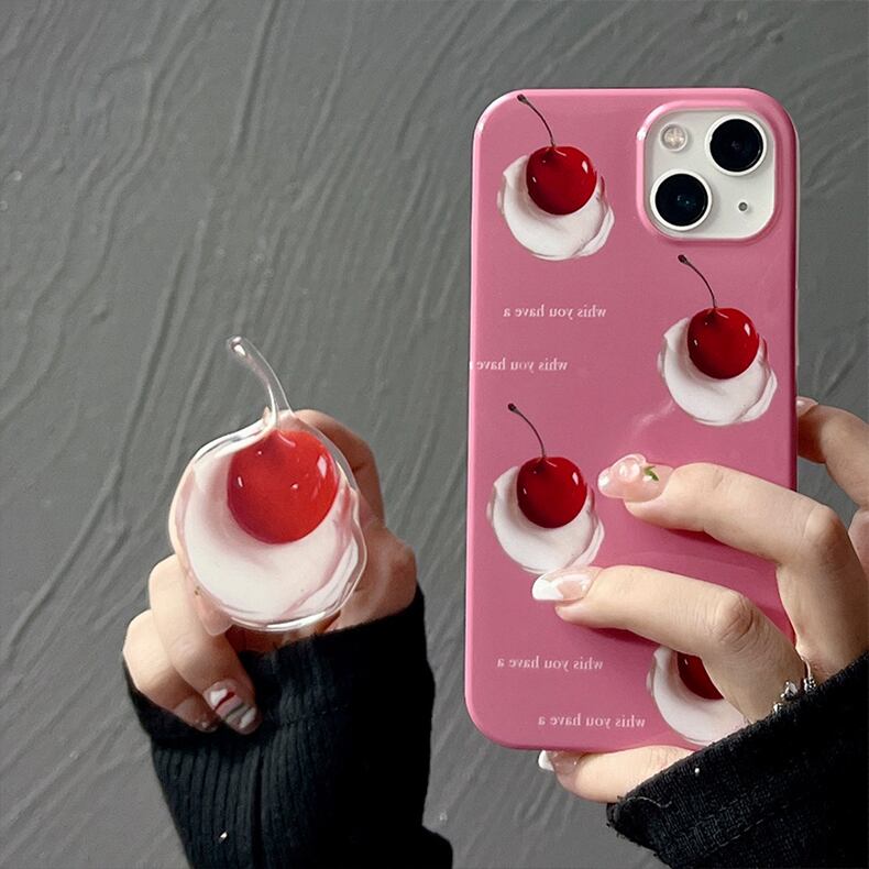 iPhone14 Plusケース チェリー iPhone14 Proカバー ソケット付き アイフォン13 12Pro 11ProMax XRケース 可愛い ピンク系 レディース 持ちやすい