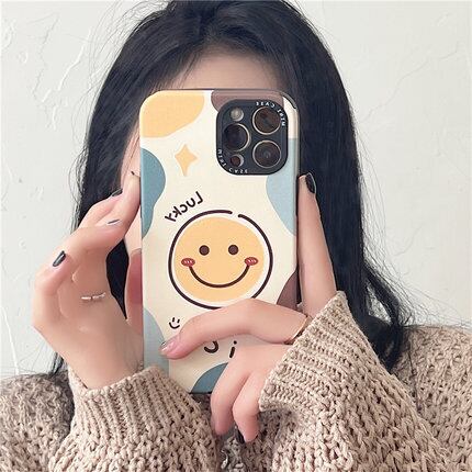 iPhone14 ProMax~Xケース ニコニコ 笑顔 スマイル 表情柄 アイフォンカバー ペア向け シンプル 大人可愛い ブラック ベージュ 全2色