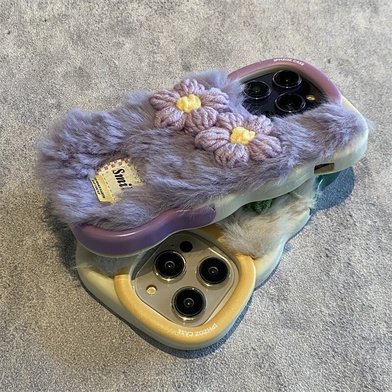 iPhone14 Proケース 花柄 ふわふわ iPhone13/12 Pro/12/11ProMax/11Proカバー 可愛い トレンド 韓国ファッション お洒落 フラワー 全3色