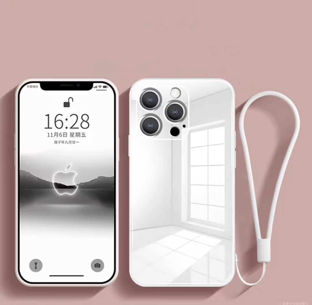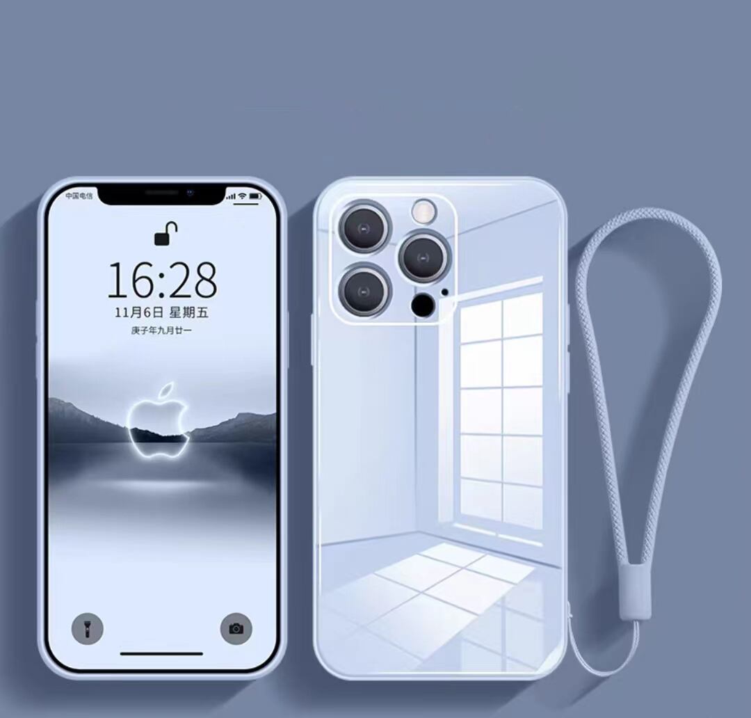 iPhone14 Pro ケース 強化ガラス ストラップ付き iPhone14 ProMaxケース 光沢 iPhone14 Plusケース 無地 アイフォン 14 カバー シンプル 全7色 人気おすすめ♪