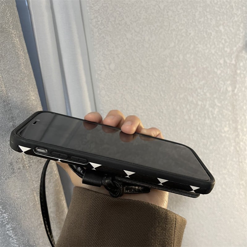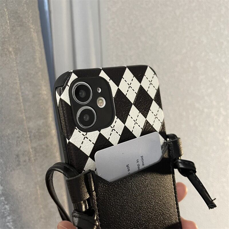 iPhone14Pro 13 12ProMax 11Proケース ストラップ付き 菱形 カード収納 かわいい 黒 アイフォンXR SE3 8Plusカバー レディース 便利 おすすめ