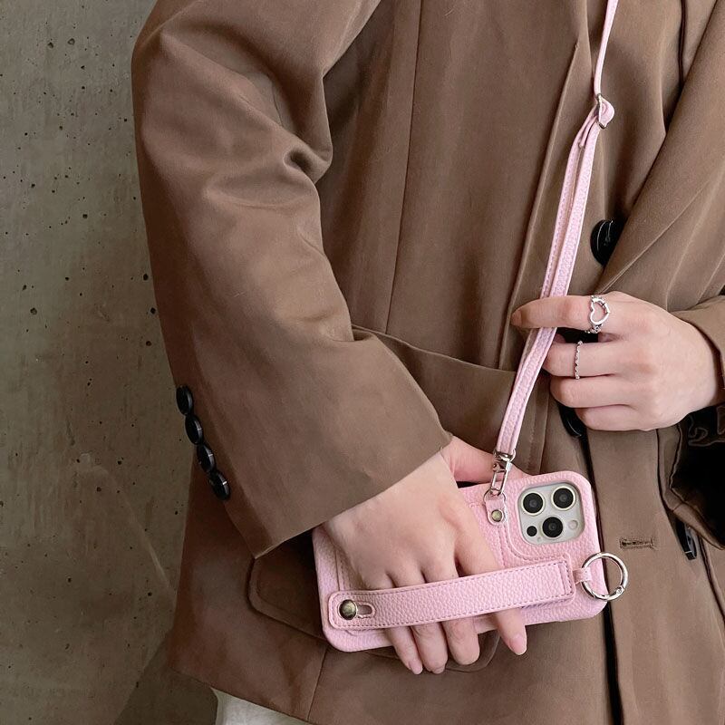 iPhoneケース・スマホケース ショルダーストラップ付き iPhone14 Proケース バンド付き iPhone13Mini 12Pro 11ProMaxケース カード収納 かわいい 斜めがけ 5色