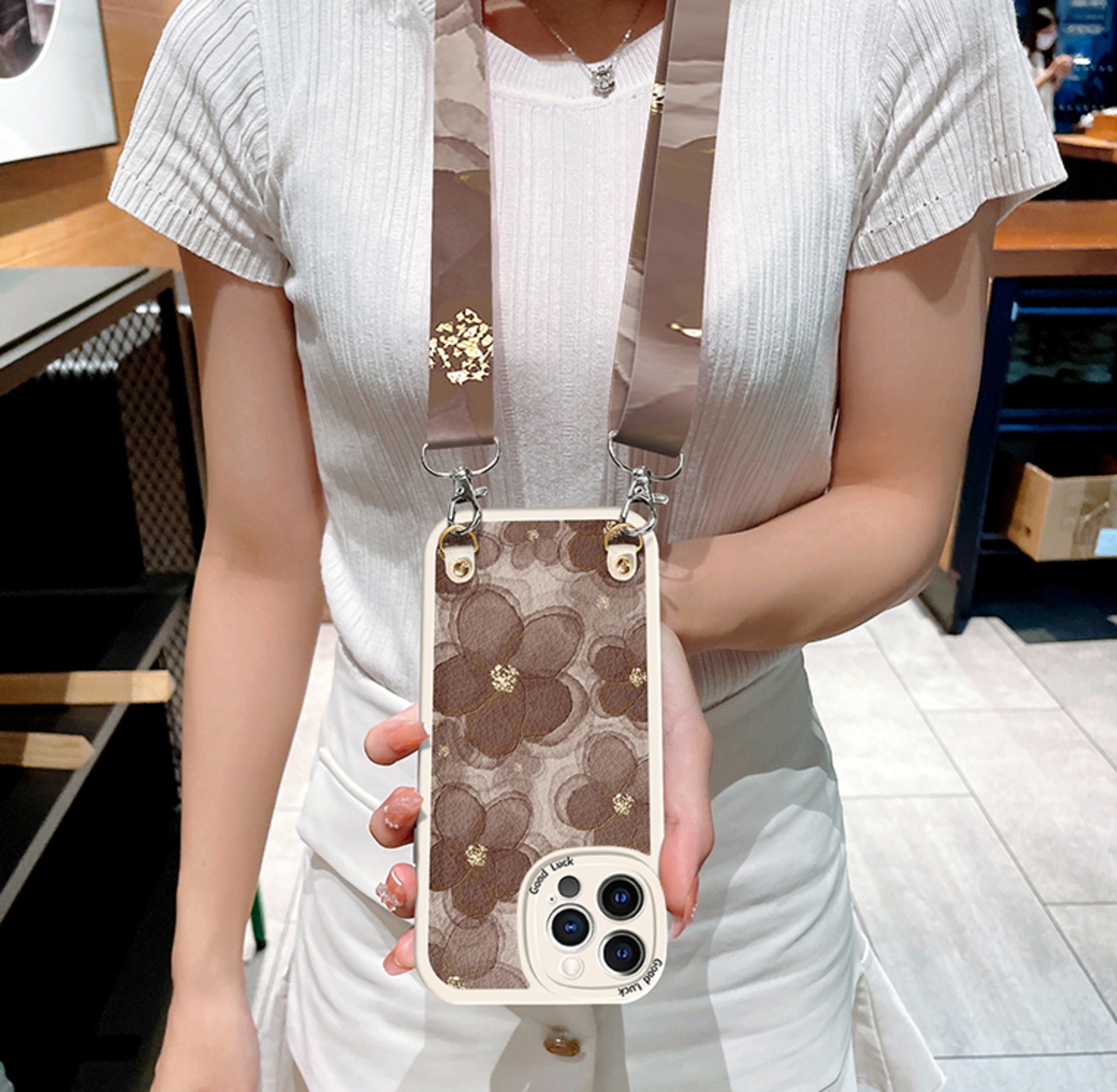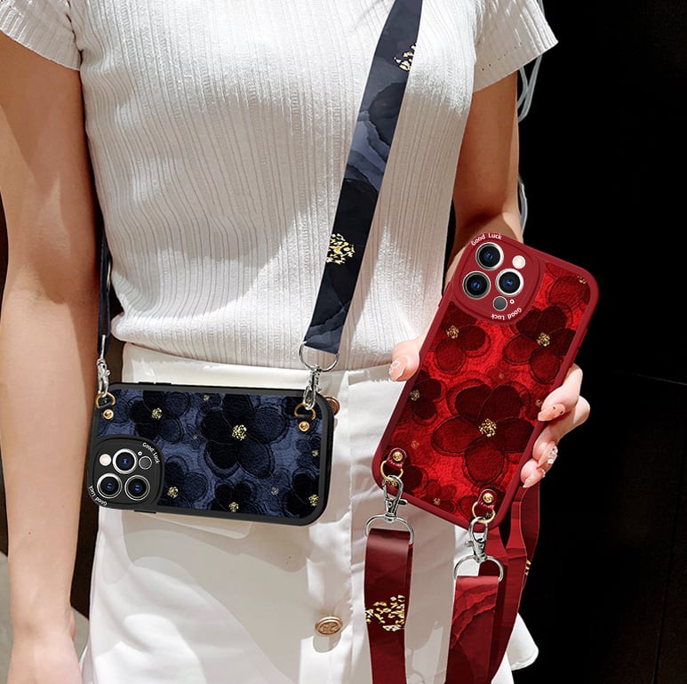 首掛けストラップ付き iPhone14ProMax 14Pro 14Plus 14ケース 斜めがけ iPhone12 Min/11 Pro/XS/SE3/8 Plusケース フラワー 便利 かわいい 花柄 オシャレ 2種類