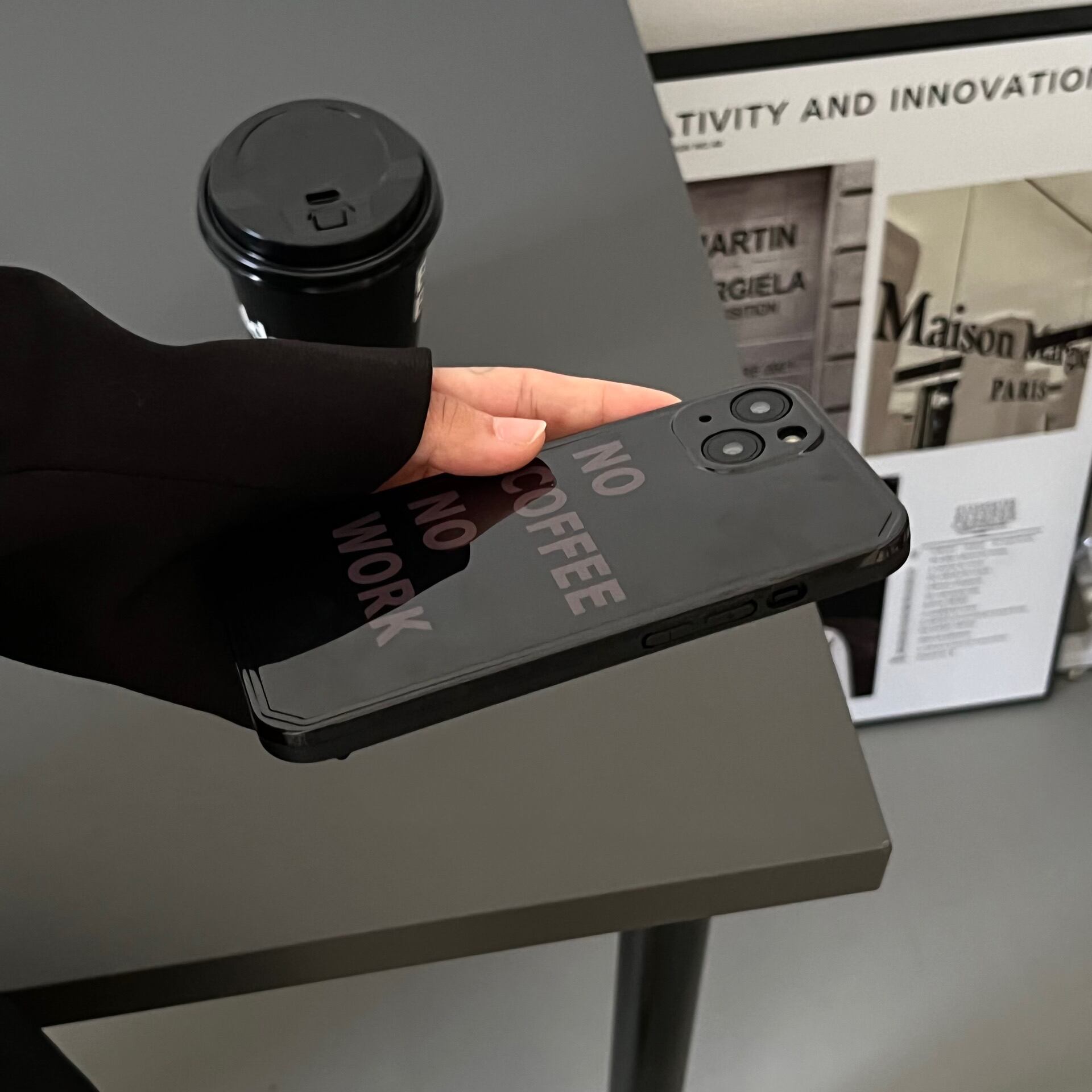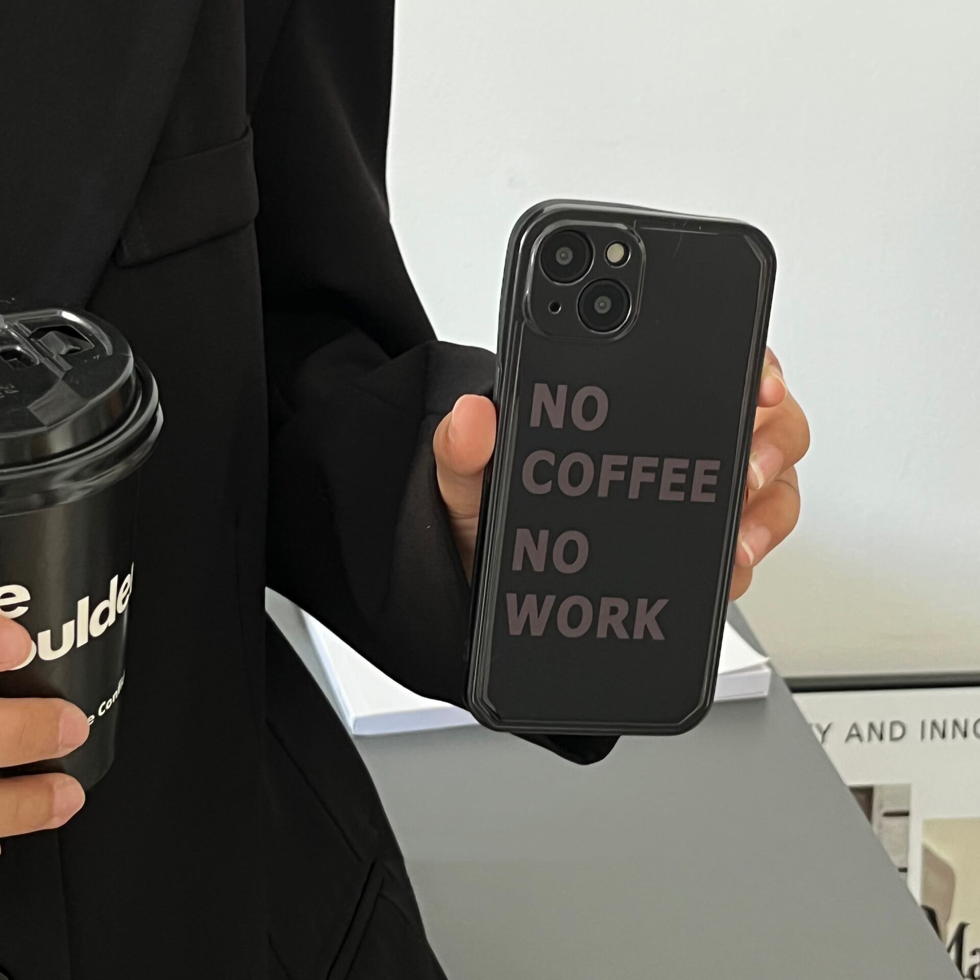 iPhone14 PROケース 英語文字 NO COFFEE NO WORK 可愛い iPhone13 ProMaxカバー 絵文字 iPhone12ケース おもしろ アイフォン11promaxカバー 黒