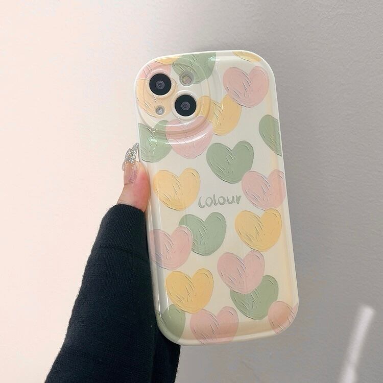 iPhone14 Proケース 可愛い ハート柄 iPhone13 ProMaxケース 光沢 iPhone12 11Pro XS SE3 8Plusカバー 油絵風 プレゼント 友達とお揃い