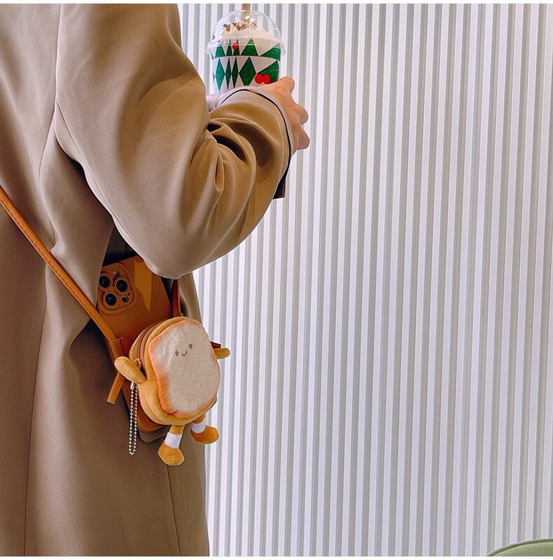 コインケース付き アイフォン14 ProMaxケース ストラップ付き iPhone13Miniケース トースト ポッケト付き iPhone12 11Pro XS SE3 8Plusケース 可愛い パン 便利