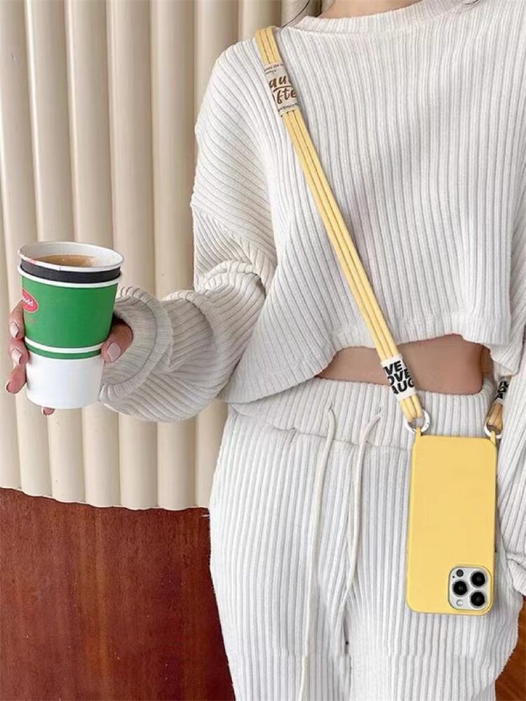 アイフォン14 Plusケース イエロー 太いストラップ付き iPhone13 Pro Maxカバー 便利 iPhone12ケース 斜めがけ iPhone11 Proケース お洒落 シンプル