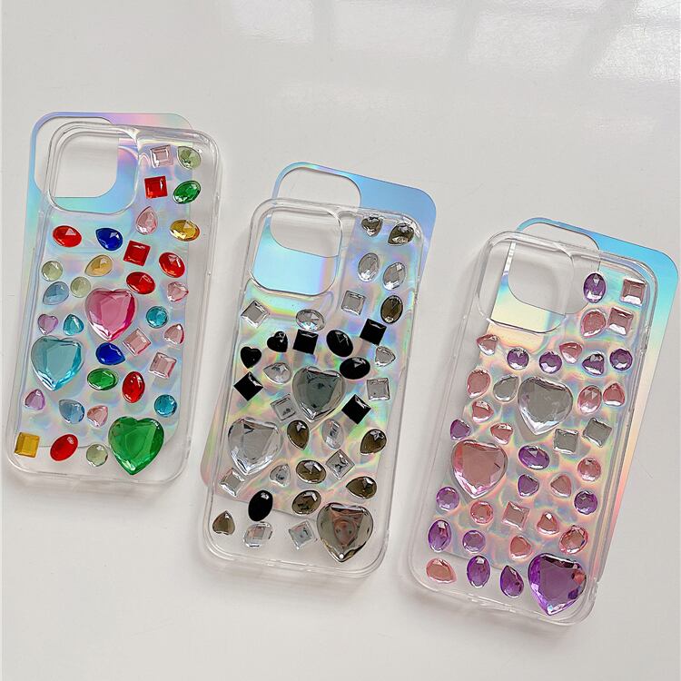 iPhone14 Pro/14 Plus/14 ProMaxケース キラキラ レーザー iPhone13ケース ライストーン付き アイフォン12Proケース 面白い iPhone11カバー 個性的