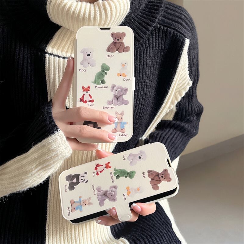 縫いぐるみ風 iPhone14Proケース 動物 アイフォン13 ProMaxカバー 手帳型 iPhone12 Proケース 熊 iPhone11ケース 犬 パンダ 兎 キュート 象 プレゼント
