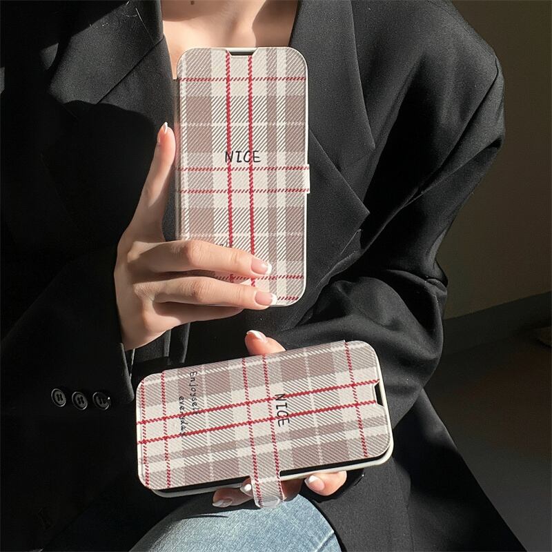 iPhone14 Pro・13・12 ProMax・11ケース チェック柄 かわいい 手帳型 オシャレ 笑顔 おすすめ