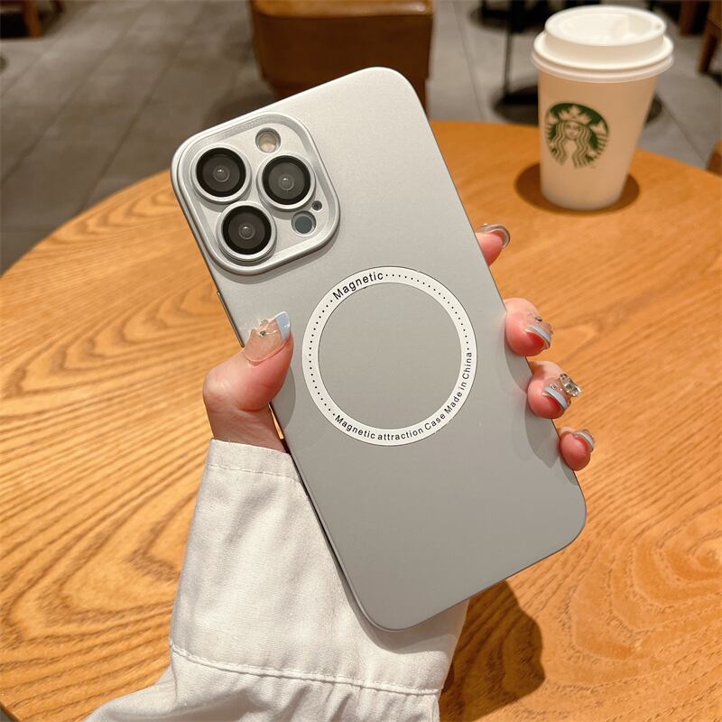 iPhone14 ProMaxケース 金属風 iPhone 13 Proケース 無地 アイフォン12ケース 単色 Qi充電対応 カメラ保護 シンプル 9色 メンズ
