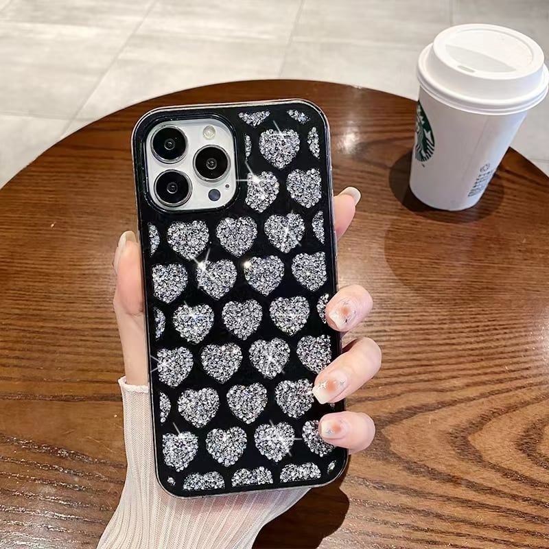 キラキラ iPhone14 Plusケース ハート iPhone13 Proケース 個性的 iPhone12ケース 可愛い iPhone11 Pro Maxカバー エレガント お洒落 ブラック