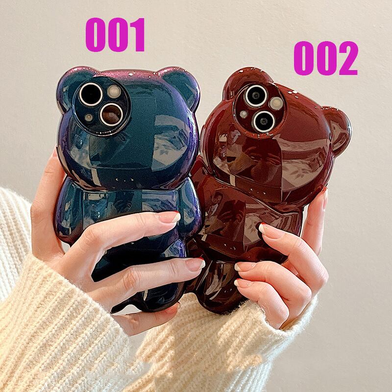 アイフォン14 Proケース 熊 iPhone13 ProMaxケース 立体 iPhone12カバー 個性的 iPhone11 ProMaxケース キラキラ 女子 ブルー レッド